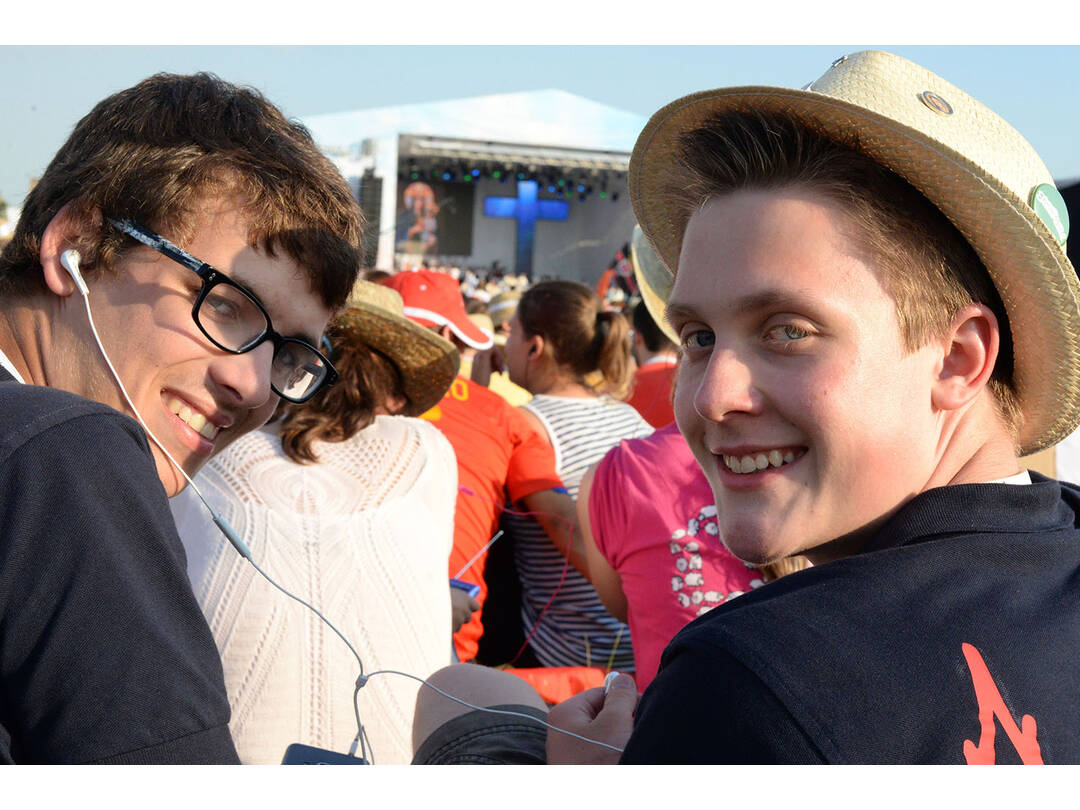 „Hier sind so viele anderen Christen aus aller Welt“, schwärmt der 17-jährige Dominik. Beim Mittagessen unter blauem Himmel und strahlendem Sonnenschein zieht ein fast endloser Pilgerstrom an der Gruppe mit Dominik und Tobias vorbei. Die große Weltjugendtagsgruppe des Erzbistums Paderborn wirkt auf einmal ganz klein. „Auch, wenn das hier schon total riesig ist, ist das sicher nur ein kleiner Vorgeschmack auf Krakau“, sagt Dominik. Zwei Millionen Jugendliche werden zu den Tagen mit Papst Franziskus erwartet.