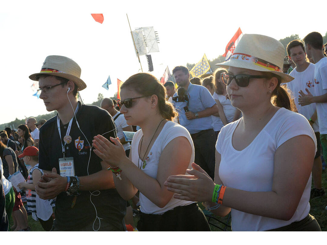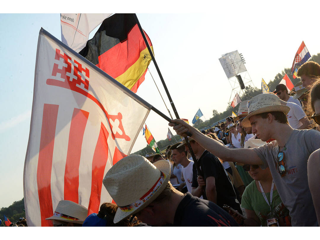 Dominik und Tobias ziehen nun vor die Bühne, wo gleich der Gottesdienst beginnt. Hunderte Priester und 30 Bischöfe ziehen ein, die Masse erhebt sich und füllt den Flugplatz, der für den Open-Air-Gottesdienst genutzt wird. „Es ist ein tolles Gefühl, mit so vielen anderen Gottesdienst zu feiern, in einer so jungen Kirche“, sagt Tobias. Er findet: „Bei so einem Weltjugendtag kann man seinen Glauben viel besser definieren.“ Das scheinen viele der Weltjugendtags-Pilger zu wollen, denn während der Predigt von Erzbischof Wiktor Skworc ist es still.