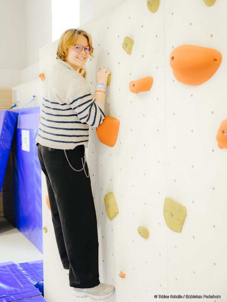 Ich gehe zwei- bis dreimal die Woche in die Boulderhalle in Paderborn – meist mit Freundinnen und Freunden. Wichtig beim Bouldern ist für mich die Gemeinschaft. Wir helfen uns gegenseitig, wenn jemand nicht weiterkommt. Und Bouldern bedeutet für mich auch, sich immer wieder zu challengen: Schaffe ich diese Strecke heute?